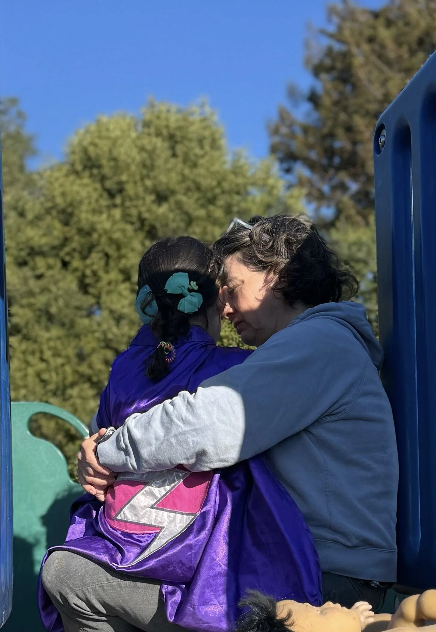 Hugging (pictured!). Hugging is great because not only is it an emotional comfort, but it engages the proprioceptive system to signal to the distressed person that they don’t need to flee, freeze, or fight. Things are okay. If they don’t want to hug, don’t take it personally. Sometimes the offer of a hug is enough support.